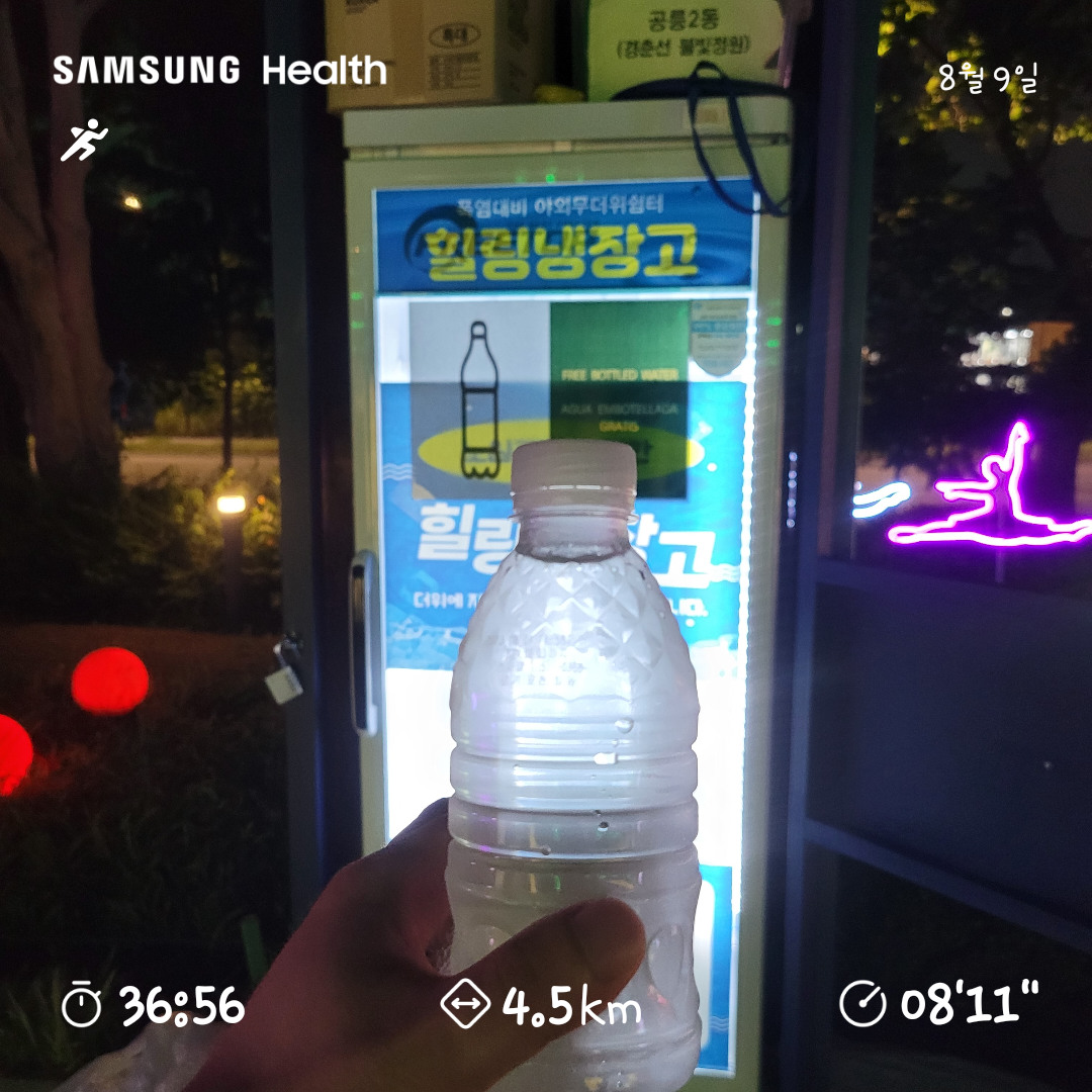 길 가운데 현재 더위에 대해 민감한지 저렇게 업소용 냉장고를 가져다 놓고 마음대로 물을 가져가도 되더라.