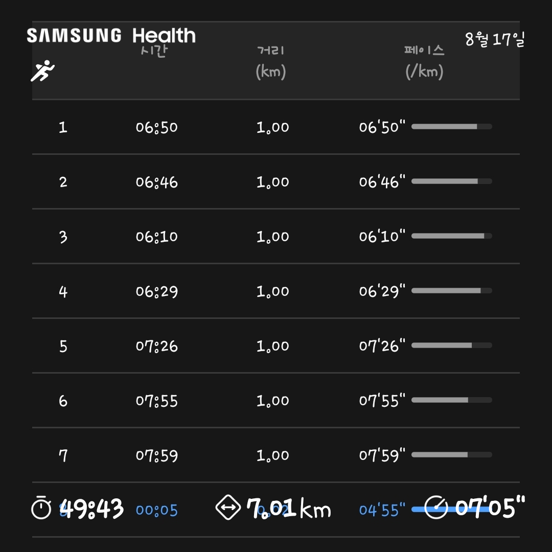 - 내일(2023. 08. 18)까지만 5km 뛰고 토, 일은 쉬어야겠다.