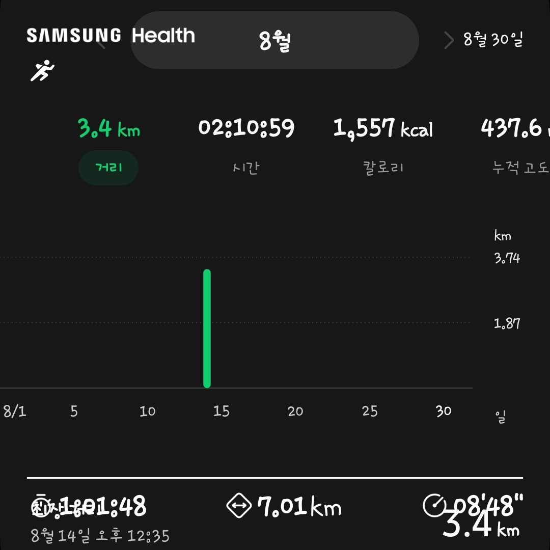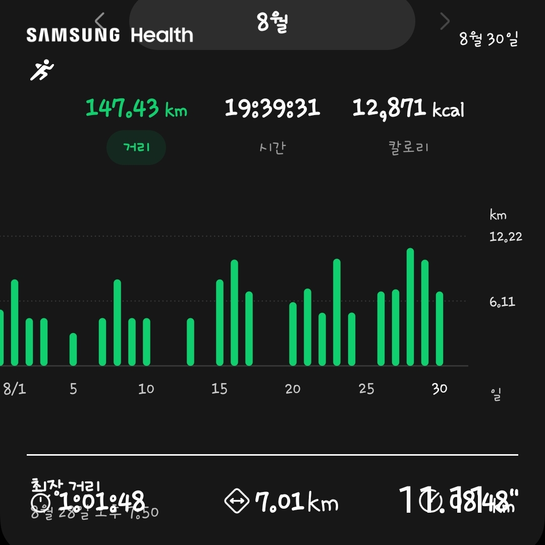 - 8월 한달간 150km를 태어나서 처음 뛰어봤다.