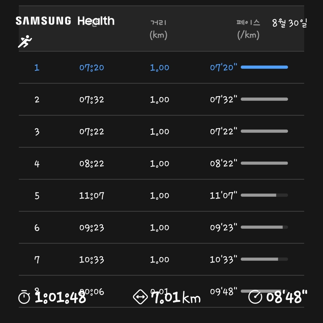 그렇게 꾸역꾸역 결국 7km를 뛰었다.
