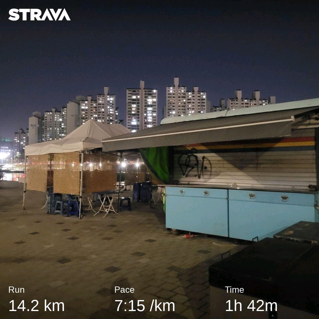 - 어제 10km에 오늘 바로 14km를 뛰니 확실히 하체쪽이 많이 힘들다.