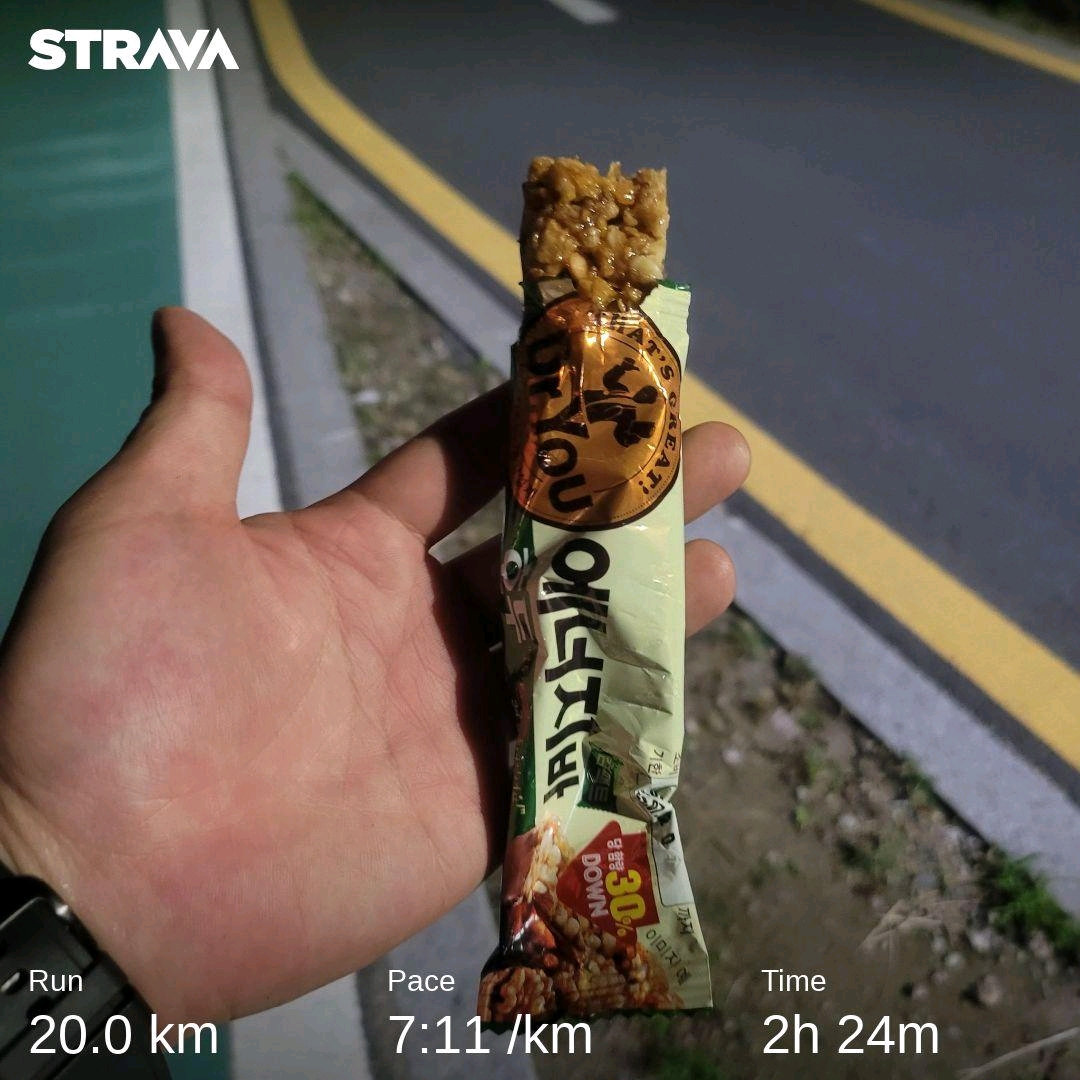 18km지점에서 먹으면서 걷다가 잠깐이라도 단게 들어가니 아주 쬐끔 힘이 나더라.