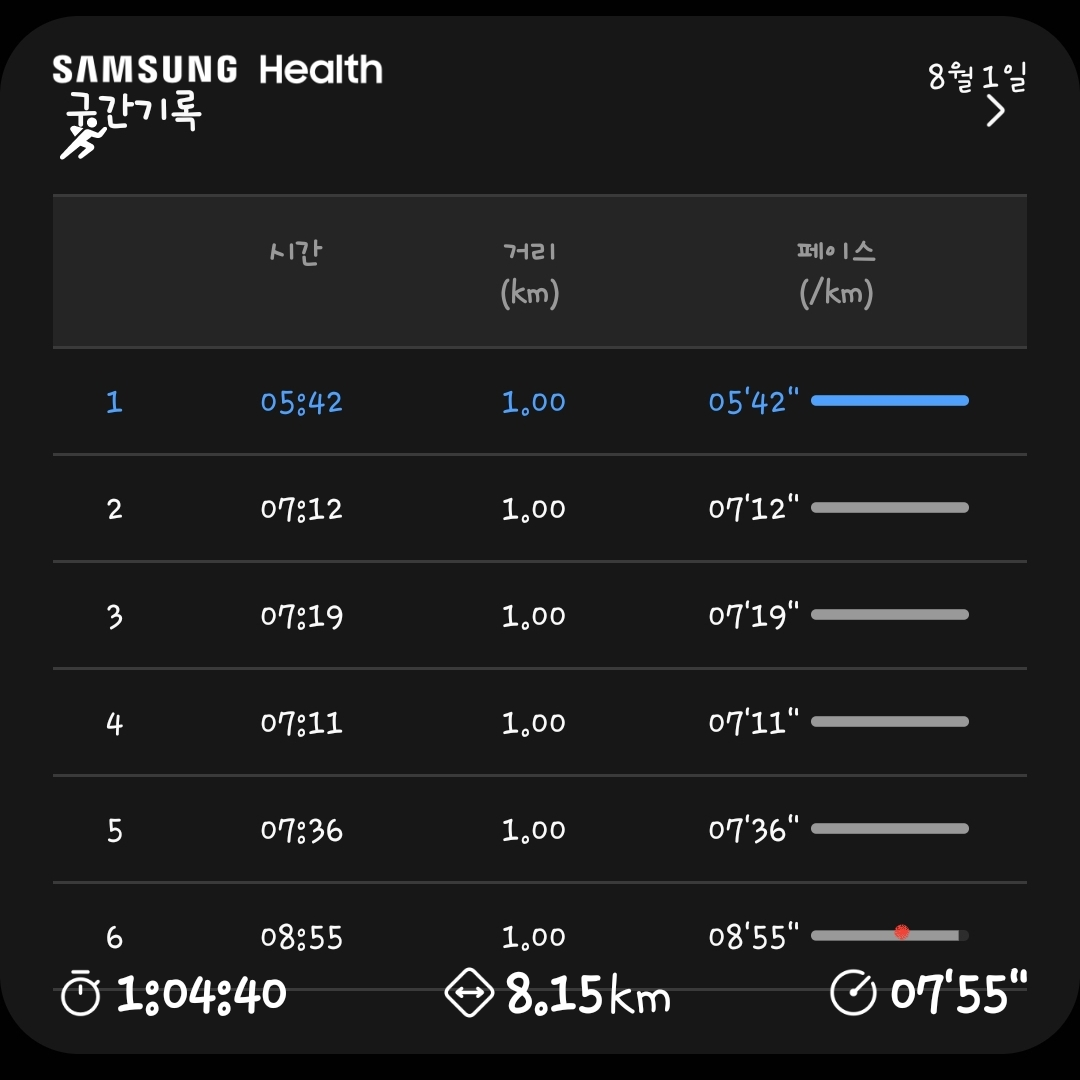 6km이후로는 거의 조금 빠른 걸음으로 걷다시피 했다. 너무 힘들더라.