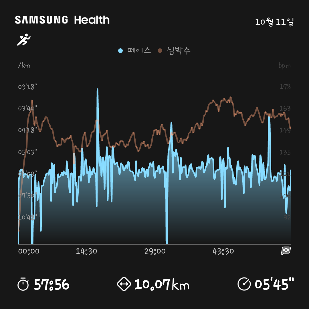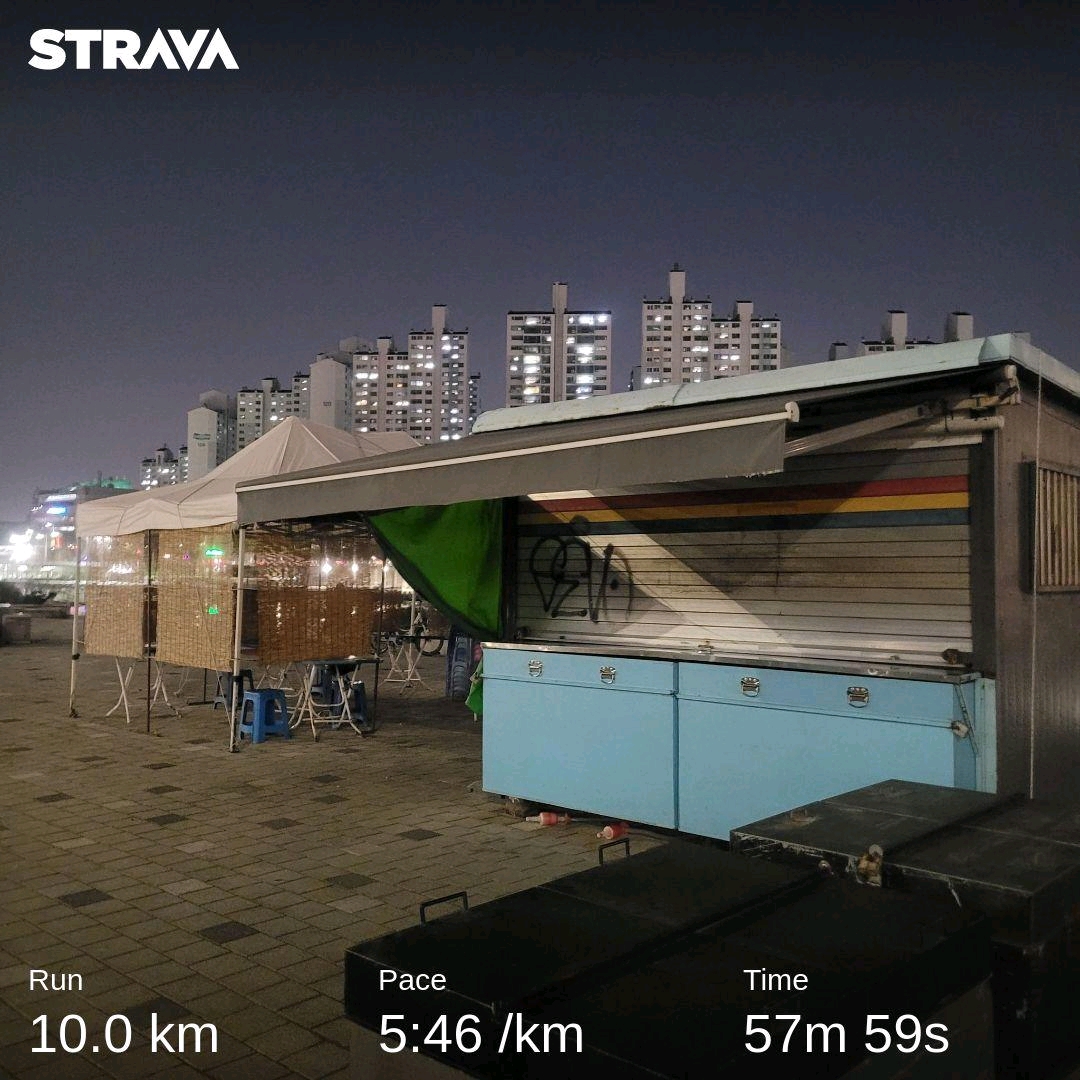 - 오늘도 10km 비공식 PB 갱신.