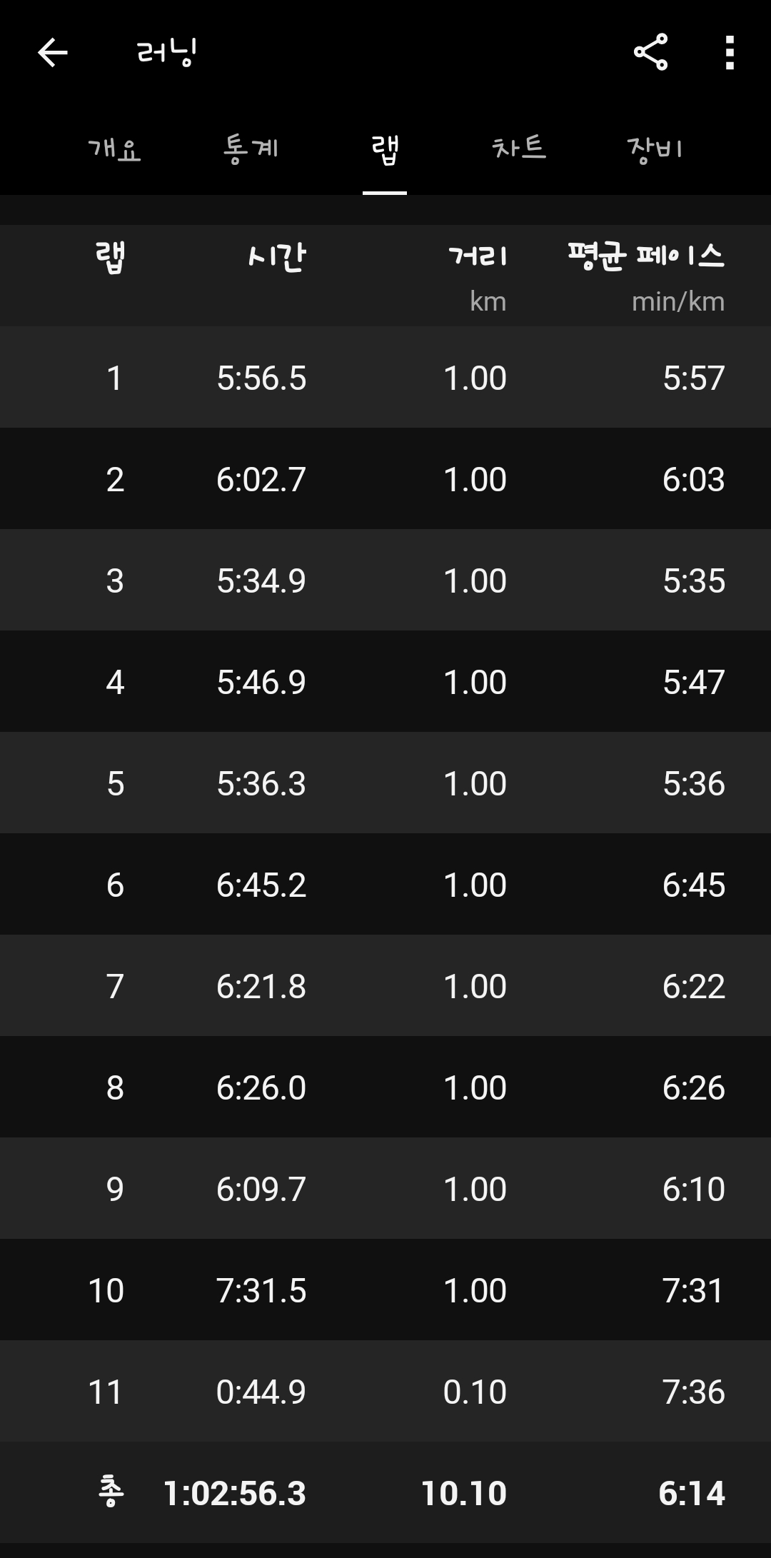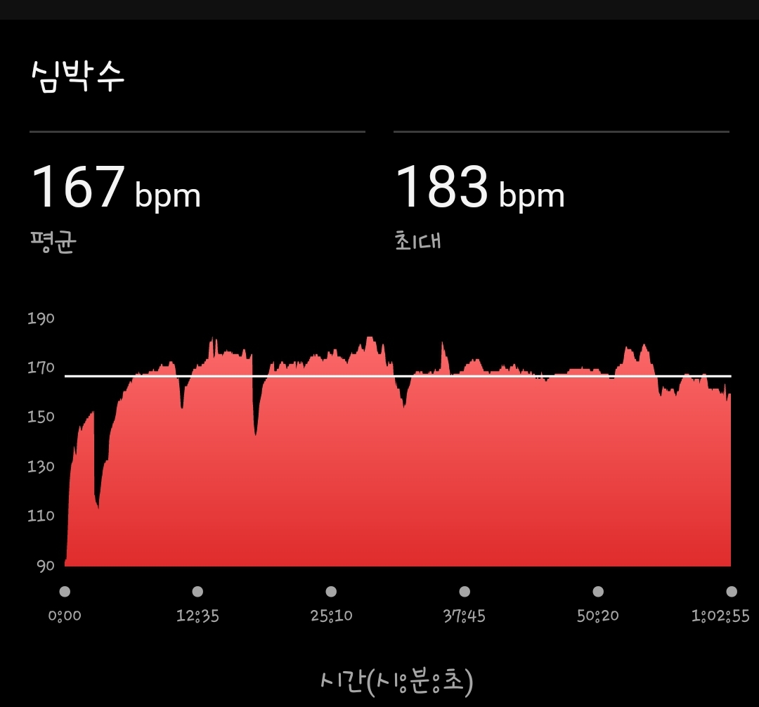 초반에 날씨가 좋은 줄 알고 신나서 뛰었다가 후반에 땀 때문에 추웠다.