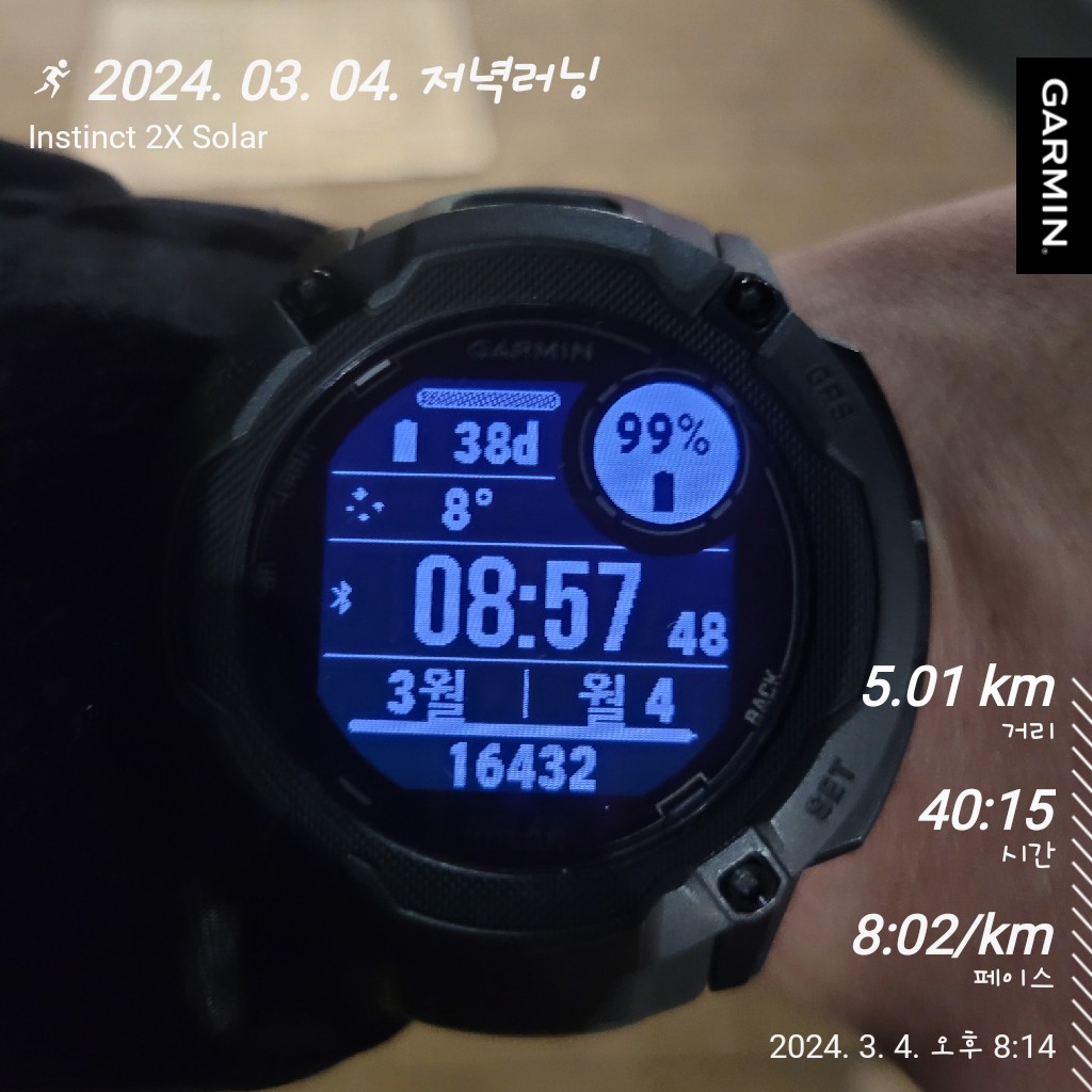 오늘은 가볍게 5km까지 뛸 생각이여서 망정이지...