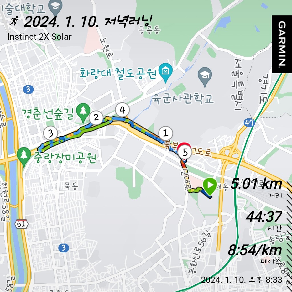 묵동천러닝 / 무릎부상 / 가민인스팅트 2x 솔라 추천 / 중랑천러닝 / 서울러닝코추천 / 러닝 / 5.01km러닝 / 2024. 1.10. / 오늘의 러닝