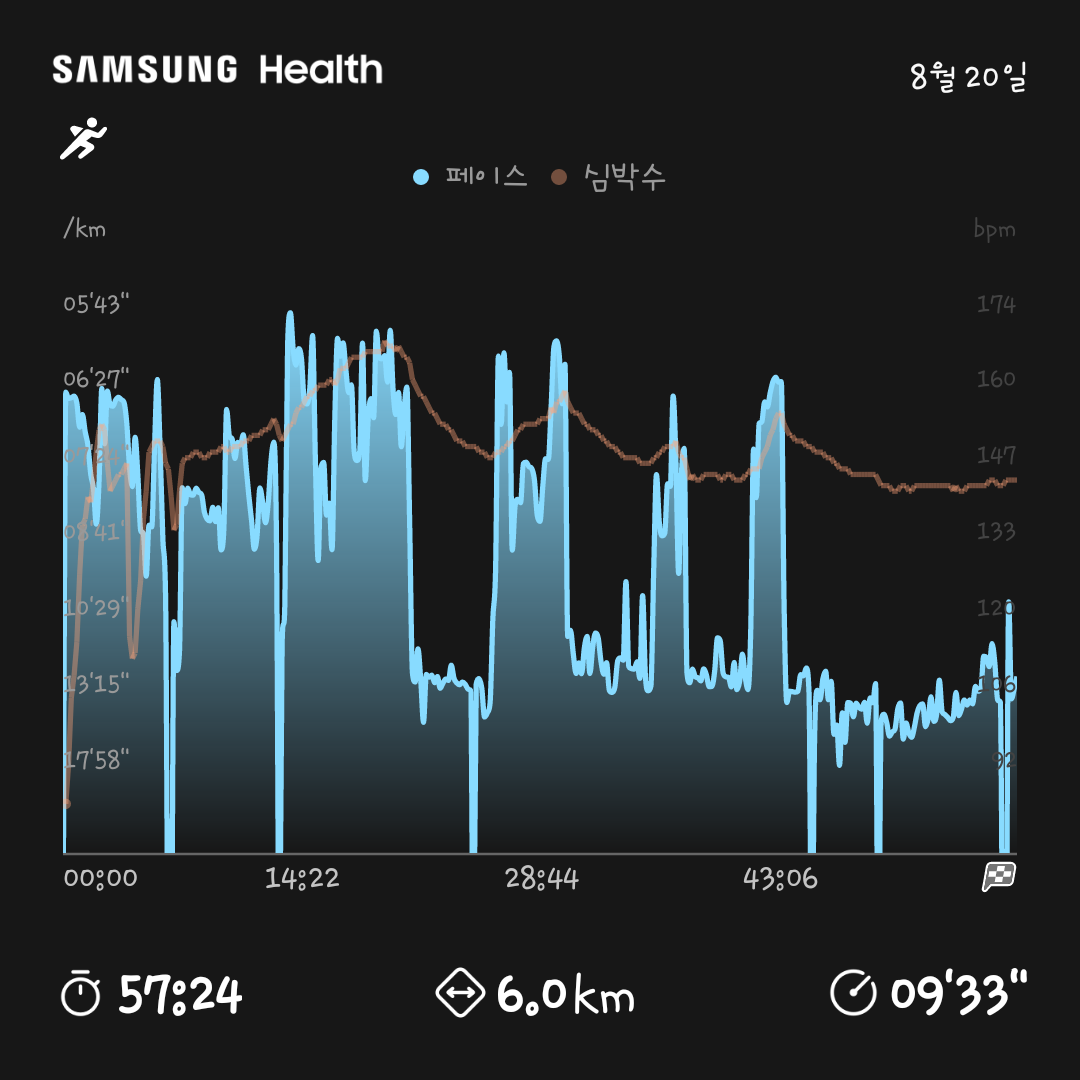 2023. 08. 20 / 중랑천러닝 / 묵동천러닝 /오늘의 러닝 / 러닝 / 6km