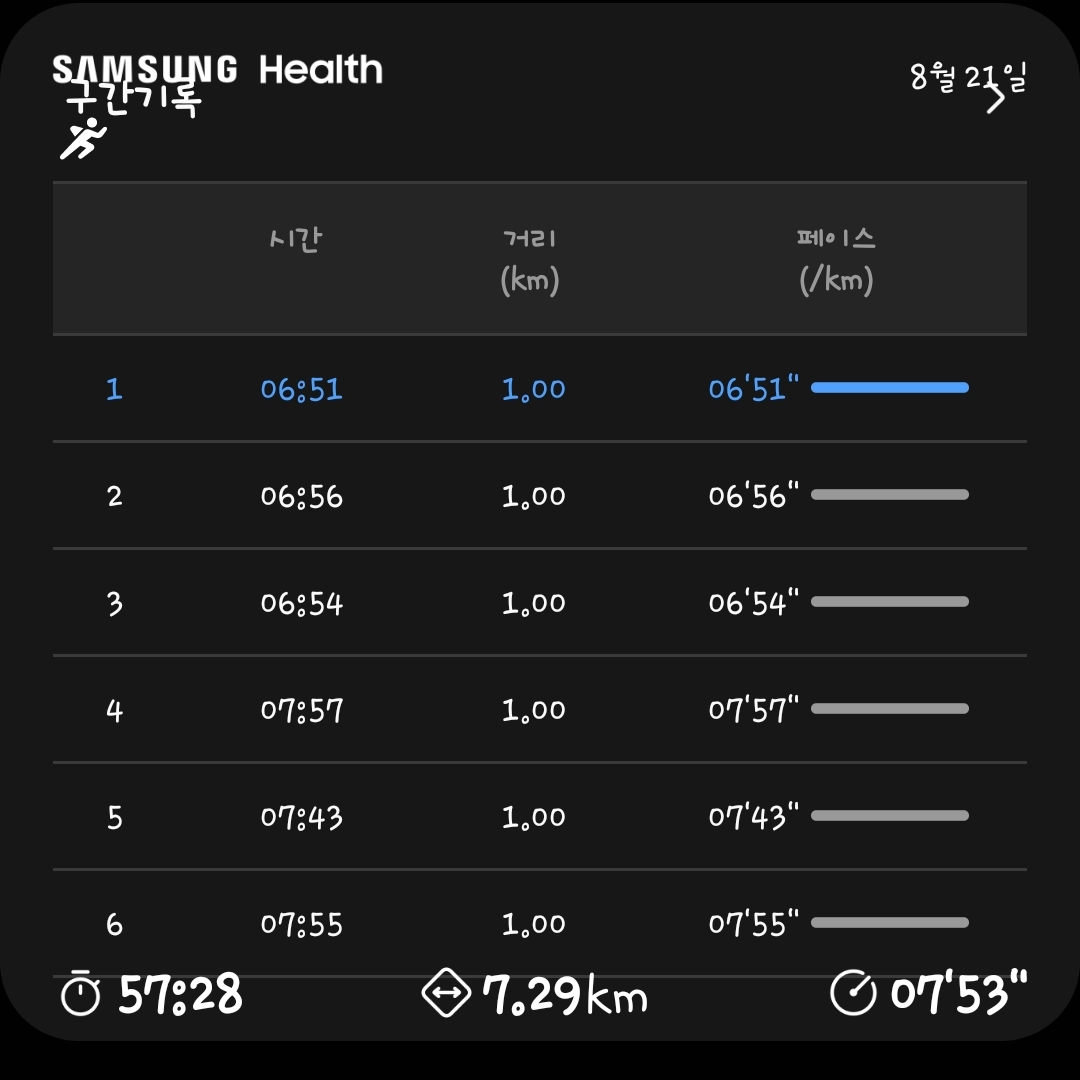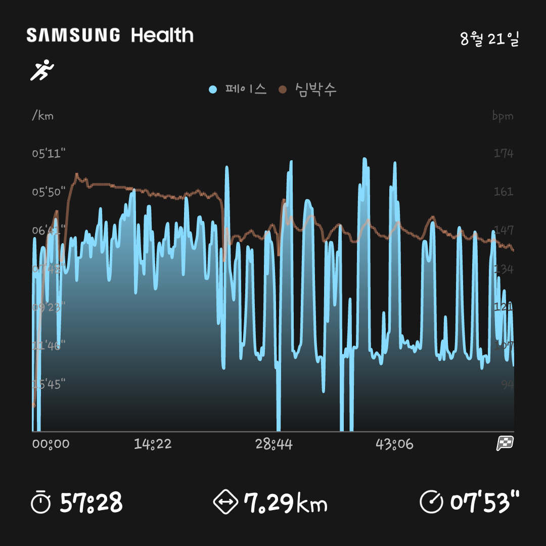 2023. 08. 21 / 중랑천러닝 / 오늘의 러닝 / 러닝 / 7.29km