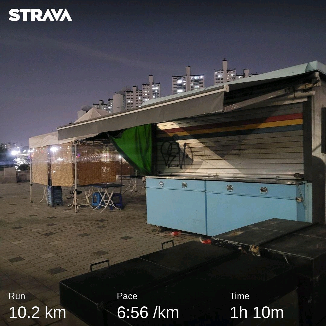 원래는 7km만 뛸려고 했는데 정신이 맑아지지 않아 10km를 뛰었다.