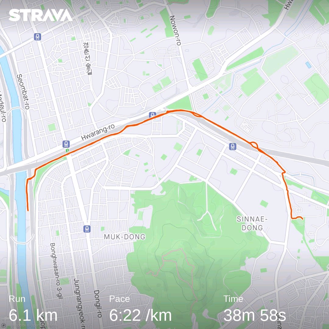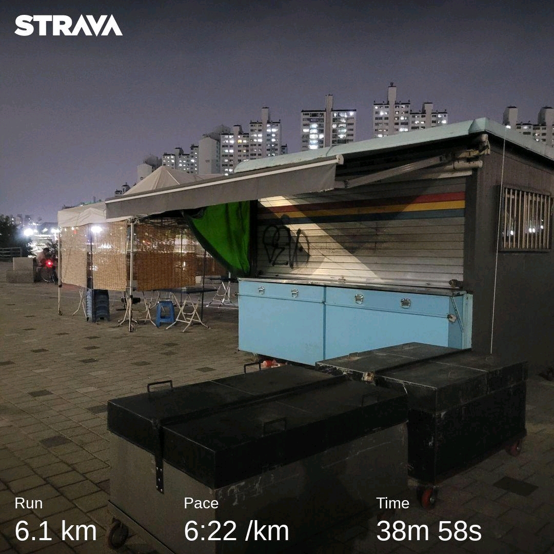 몰랐는데 뛰고 보니 1km구간 제외하고 6분 30초 이하 페이스로 뛰었다.