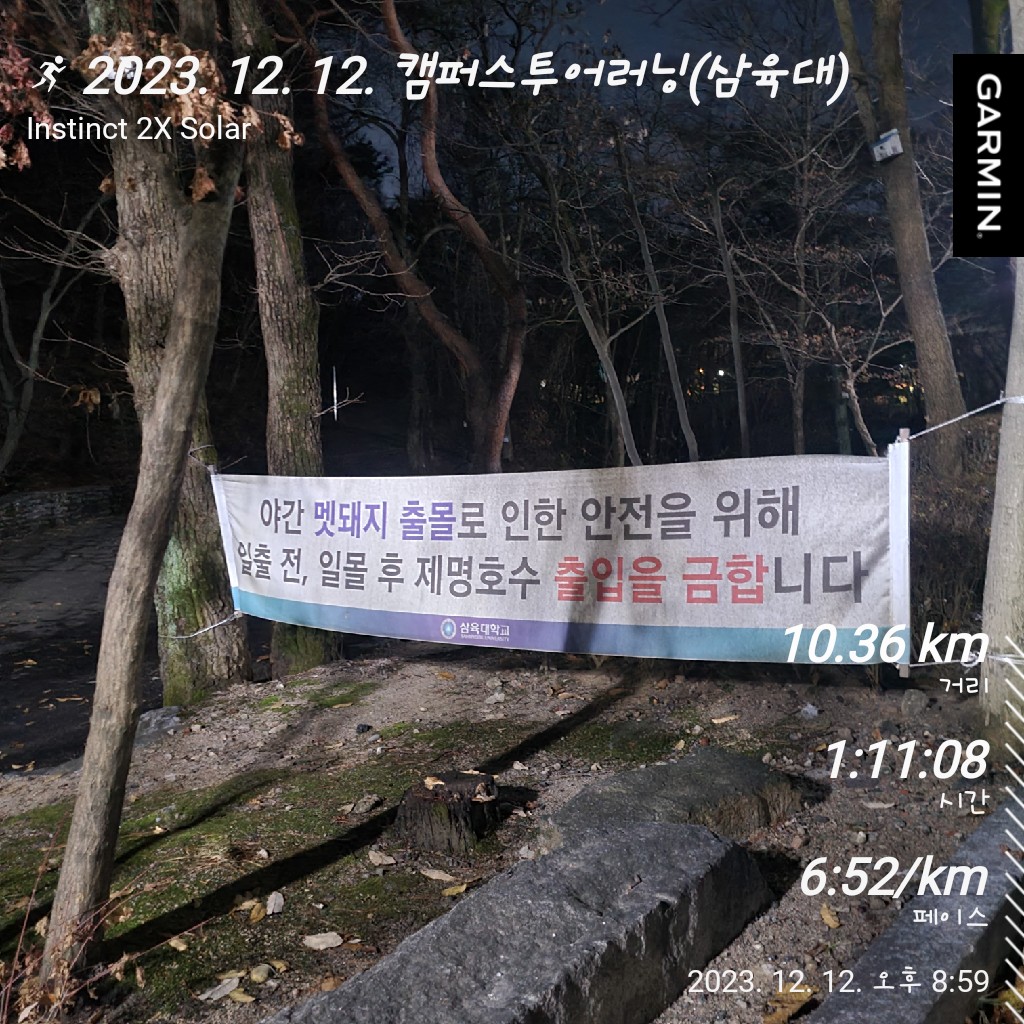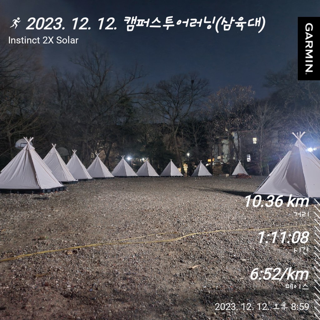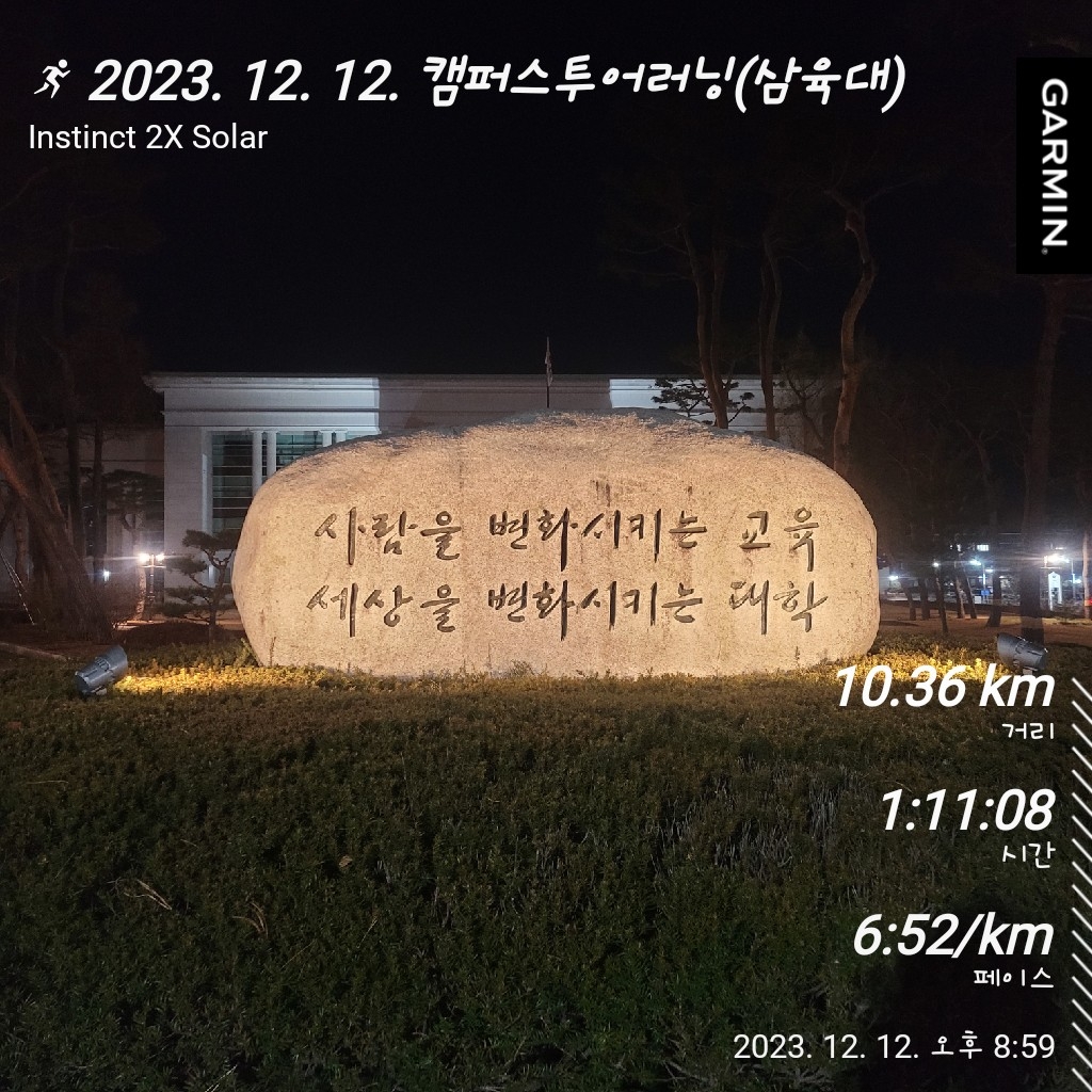 화랑대러닝 / 삼육대러닝 / 경춘선숲길러닝 / 서울러닝코추천 / 대학캠퍼스투어러닝 / 서울하프마라톤 / 가민인스팅트 2x 솔라 / 써코니 액손 3 / 러닝 / 10.36km / 2023. 12. 12. / 오늘의 러닝