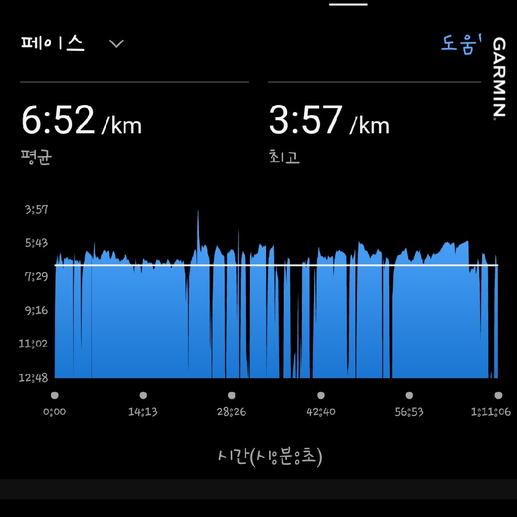 페이스에서 푹푹 꺼지는 부분들은 신호등과 사진을 찍느라고 꺼진 부분이다.