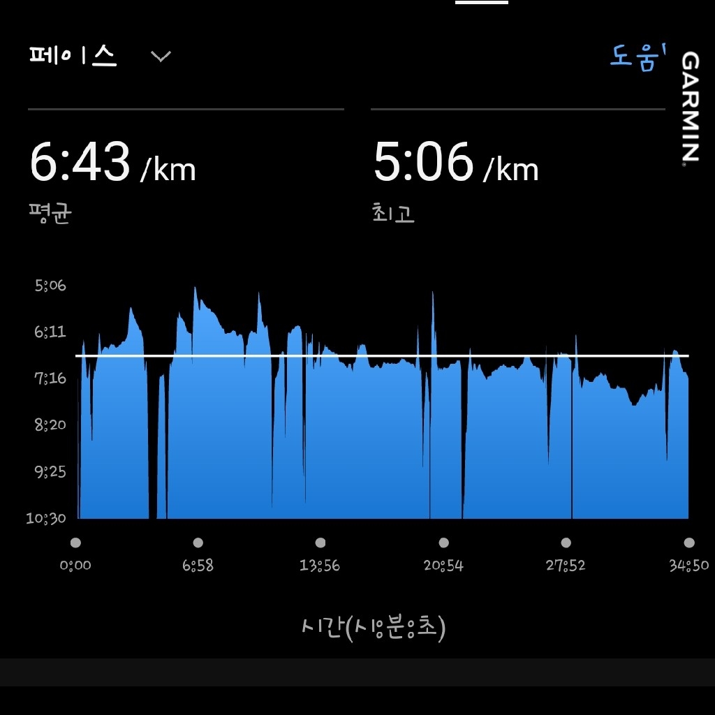 6분 후반때 페이스. 개인적으로 쏘쏘 한 듯 하다.
